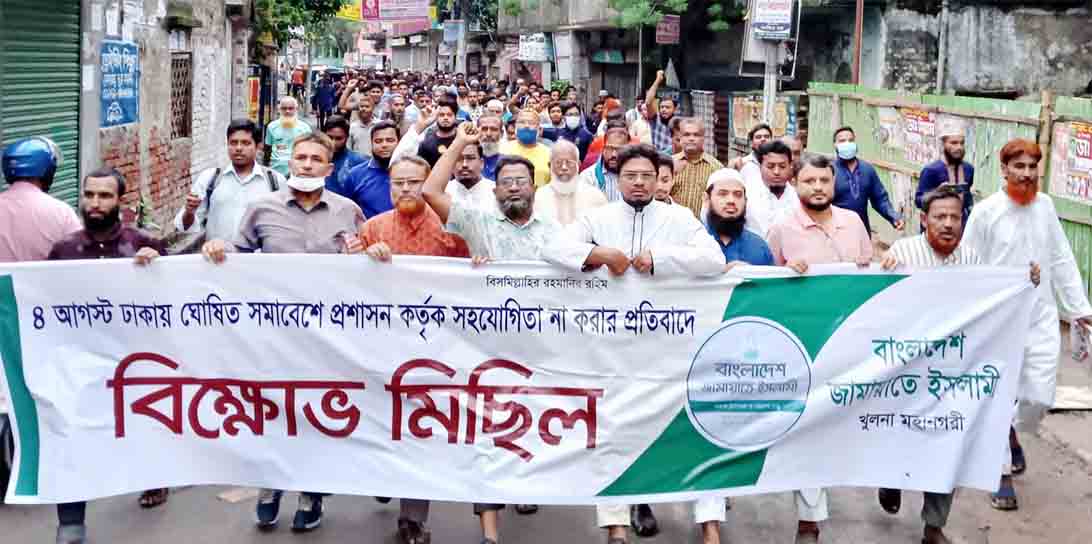 বাংলাদশে জামায়াতে ইসলামীর কেন্দ্রীয় মজলিসে শুরা সদস্য ও খুলনা মহানগরী আমীর অধ্যাপক মাহফুজুর রহমান বলেন, ‘আমরা শান্তিপূর্ণ কর্মসূচীতে বিশ্বাস করি। আওয়ামী লীগ প্রতিদিন মিছিল করে মিটিং করে তাদের অনুমতির দরকার হয় না। অথচ আমাদের শান্তিপূর্ণ সমাবেশ কর্মসূচীর জন্য বারবার অনুমতি চাওয়া হলেও পুলিশ অনুমতি দেয় না।’ সরকারকে পদত্যাগের আহ্বান জানিয়ে জামায়াতে ইসলামীর এই নেতা বলেন, ‘সংসদ ভেঙে দিন, অবলিম্বে পদত্যাগ করুন। দ্রব্যমূল্য কমান, জনদুর্ভোগ কমান, লুটপাট বন্ধ করুন। জনগণকে স্বস্তি দিন, মুক্তি দিন। অন্যথায় জনগণের মুক্তি নিশ্চিত করার লক্ষ্যে গোটা বাংলাদেশে গণআন্দোলন গড়ে তোলা হবে। জনগণ ফুঁসে উঠেছে। জনগণ কেয়ারটেকার সরকারের দাবি আদায় করেই ছাড়বে ইনশাআল্লাহ। নির্বাচন নিয়ে সরকারের বিরুদ্ধে ষড়যন্ত্রের অভিযোগ তুলে তিনি বলেন, রাজনৈতিক নেতা-কর্মীদের নির্বাচন থেকে আলাদা করার জন্য পরিকল্পিতভাবে রায় দেওয়া হচ্ছে। বিরোধী দলের নেতাদের জেলে পুরে রেখে নির্বাচন করার ষড়যন্ত্র করা হচ্ছে। জনগণ সেই ষড়যন্ত্র ব্যর্থ করে দেবে ইনশাআল্লাহ। ৪ আগস্ট ঢাকায় ঘোষিত সমাবেশে প্রশাসন র্কতৃক সহযোগিতা না করার প্রতিবাদে কেন্দ্রীয় ঘোষিত র্কমসূচির অংশ হিসেবে খুলনা মহানগরী জামায়াতে ইসলামীর উদ্যোগে নগরীতে বিক্ষোভ মিছিল শেষে সমাবেশে সভাপতির বক্তব্যে তিনি এসব কথা বলেন।