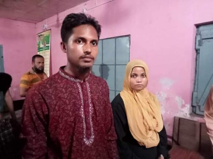 দীর্ঘ ২ বছর মোবাইলে সম্পর্ক। ছেলের বাড়ী বাংলাদেশে। ছেলেটি মুসলমান। মেয়ের বাড়ী ভারতে সে স্বনাতন ধর্মের অনুসারি, বিবাহিত এবং ১ সন্তানের জননী। মেয়েটি তার পরেও প্রেমের উপর আস্তা রেখে গত ২ মাস আগে সব কিছু ত্যাগ করে বাংলাদেশে ছেলের বাড়ীতে এসেছিল বিয়ের জন্য। সেই সময় ছেলের বাড়ীতে মেনে না নেয়ার কারনে মেয়েটিকে ফিরে যেতে হয় তার নিজ দেশে। দেশে গিয়ে মেয়েটি সামাজিক যোগাযোগ মাধ্যম মোবাইলে পুনরায় যোগাযোগ করে ছেলেটির সাথে সেই সময় ভিডিও কলে ভারতে থেকে ছেলেটি কে সামনে মৌলবি ডেকে কলমা পড়ে মুসলমান হয় সে এবং মুসলমান হওয়ার দৃশ্য মোবাইলে সেভ করে রাখে মেয়েটি। মুসলমান হয়ে পুনরায় গত ১৪ আগষ্ট পাসপোর্ট এবং ভিসার মাধ্যমে বাংলাদেশে প্রবেশ করে। ছেলেটি তার কথা কথা মত মেয়েটির সাথে দেখা না করায় মেয়েটি বাধ্য হয়েই থানার আশ্রয় গ্রহন করে। থানা এবং স্থানীয় গন্যমান্য বেক্তিদের সমঝোতার মাধ্যমে তাদের কে মুসলীম আইনে বিবাহ সম্পন্ন করা হয় ১৭ আগষ্ট বৃহস্পতিবার ইউনিয়ন পরিষদে বসে। মেয়েটির বর্তমান নাম জান্নাতুল মিম। ছেলের নাম মিরাজ।