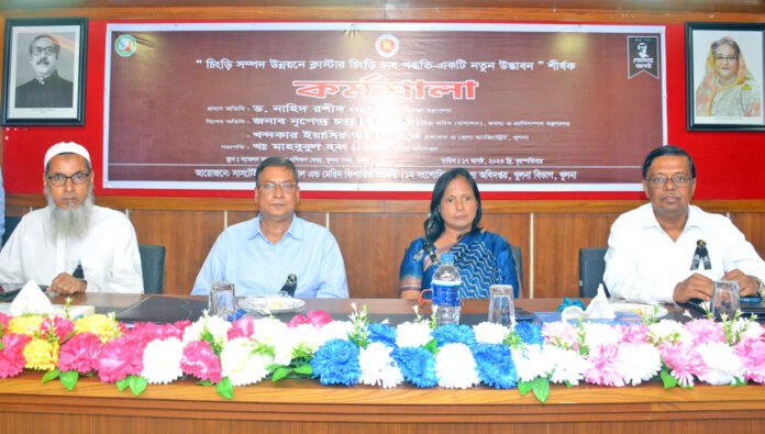 ‘চিংড়ি সম্পদ উন্নয়নে ক্লাস্টার চিংড়ি চাষ পদ্ধতি-একটি নতুন উদ্ভাবন’ শীর্ষক কর্মশালা আজ (বৃহস্পতিবার) সকালে খুলনার গল্লামারী মৎস্য বীজ উৎপাদন খামার সম্মেলনকক্ষে অনুষ্ঠিত হয়। অনুষ্ঠানে প্রধান অতিথি ছিলেন মৎস্য ও প্রাণিসম্পদ মন্ত্রণালয়ের সচিব ড. নাহিদ রশীদ।