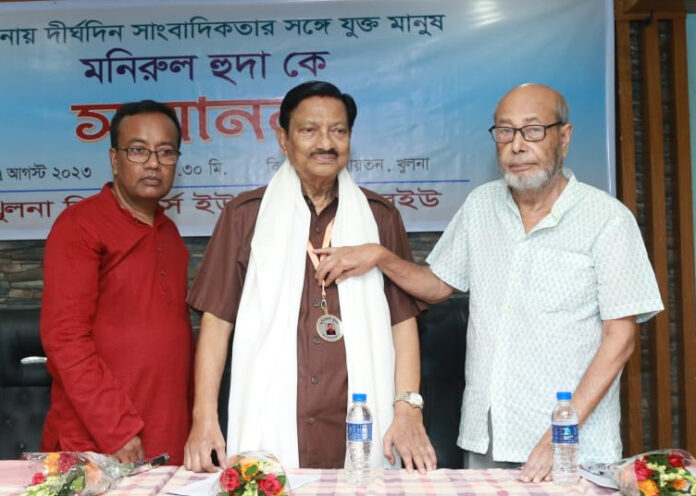 বৃহস্পতিবার (১৭ আগস্ট) সকালে সম্মাননার জবাবে খুলনার প্রবীণ সাংবাদিক মনিরুল হুদা এসব কথা বলেন।