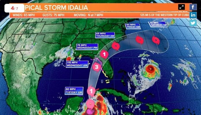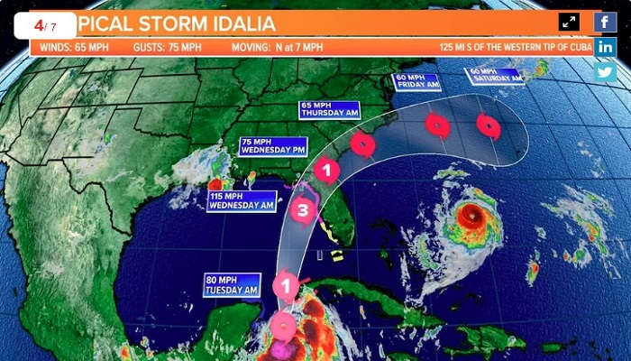 মঙ্গলবার স্থানীয় সময় সকালের দিকে শক্তি বাড়িয়ে ক্রমেই রাজ্যটির টম্পা অঞ্চলের দিকে এগিয়ে আসছে ঘূর্ণিঝড়টি। গ্রীষ্মমণ্ডলীয় ঝড় ইডালিয়া ক্যাটাগরি-৩ ঘূর্ণিঝড়ে পরিণত হয়ে বুধবার দিনের শেষভাগে আঘাত হানতে পারে।