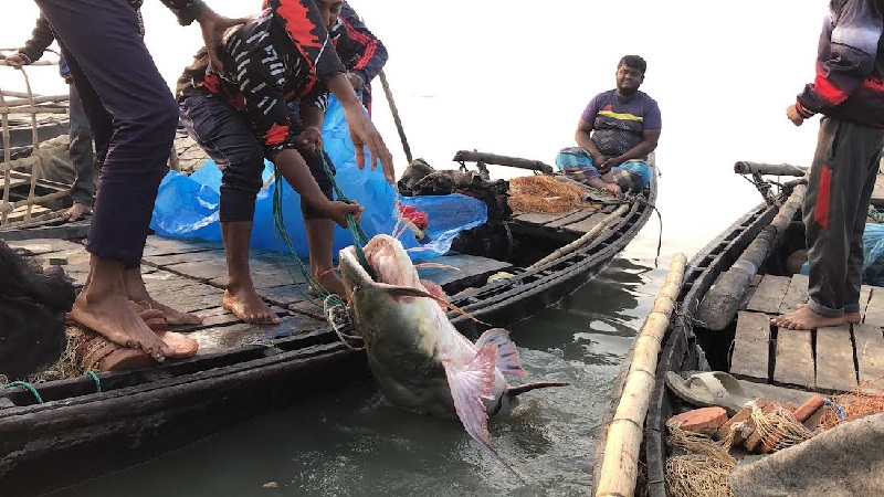 শুক্রবার সকালে রাজশাহী নগরীর বিনোদপুর জাহাজঘাট সংলগ্ন পদ্মা নদী থেকে শাহজামাল নামে এক জেলের জালে ধরা পড়ে বিশালাকৃতির এই মাছটি।