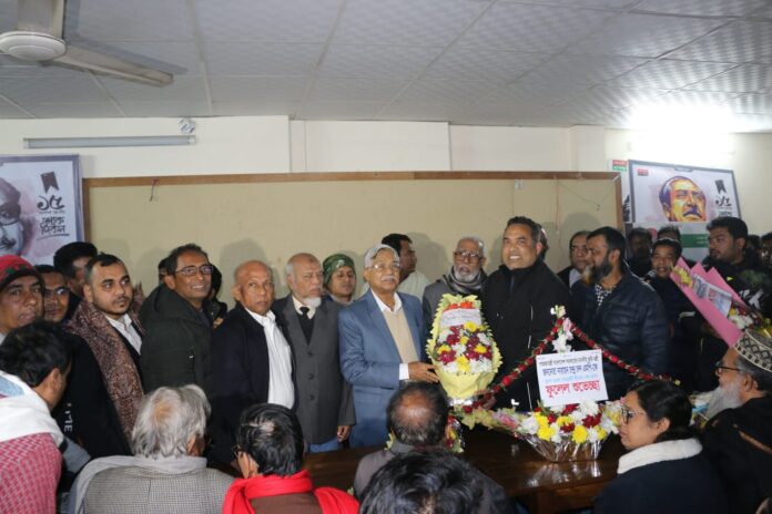 বৃহস্পতিবার বিকাল ৫টায় দলীয় কার্যালয়ে এ শুভেচ্ছা জানানো হয়। এ সময়ে উপস্থিত ছিলেন যুবলীগ নেতা মো. হারুন আর রশিদ, হাবিবুল্লাহ বাহার হাবিব, গোবিন্দ ঘোষ, গিয়াসউদ্দিন মিঠু, মো. আনিছুর রহমান, জাকিয়ার রহমান ওমান, তসলিম আহমেদ তাজ, আরাফাত হোসেন মিয়া, অভিজিত রায় অভি, মো. আমিরুল ইসলাম বাবু, আমিনুল ইসলাম শাওন, মো. রনি শিকদার, সায়েম হোসেন, তুহিন হোসেন, এস এম হেলাল আহমেদ, জাহিদুল কবির, আকাশ আহমেদসহ দলীয় বিভিন্ন পর্যায়ের নেতৃবৃন্দ।