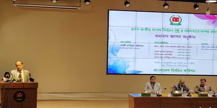 বৃহস্পতিবার (১৮ জানুযারি) নির্বাচন ভবনের অডিটোরিয়ামে আয়োজিত ‘দ্বাদশ জাতীয় সংসদ নির্বাচন সুষ্ঠু ও সফলভাবে সম্পন্ন করায়’ ধন্যবাদ জ্ঞাপন অনুষ্ঠানে প্রধান অতিথির বক্তব্যে এ কথা বলেন তিনি।