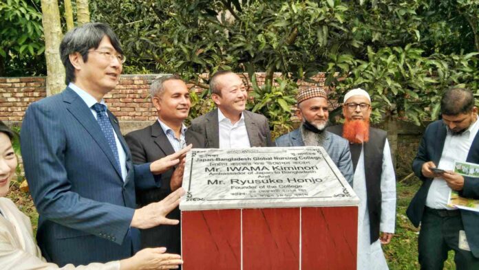 প্রশিক্ষণ শেষে উপযুক্ত শিক্ষার্থীদের জাপানসহ অন্যান্য দেশে কর্মসংস্থানের সুযোগ পাবে। এ অনুষ্ঠানের সভাপতিত্ব করেন লোহাগড়ার কৃতি সন্তান, জাপানের টোকিও বিশ্ববিদ্যালয়ের বাংলাদেশের পরিচালক ড. সৈয়দ এমদাদুল হক। এ সময় প্রধান অতিথি হিসেবে বক্তব্য রাখেন, জাপানের রাষ্ট্রদূত আইওমা কিমিনরি। অন্যানের মধ্যে বক্তব্য রাখেন জাপানের বিশিষ্ট ব্যবসায়ী রিউসুকে হনজু, নড়াইলের অতিরিক্ত জেলা প্রশাসক লিংকন বিশ্বাস, লোহাগড়া উপজেলা নির্বাহী কর্মকর্তা অনিমেষ বিশ্বাস, পৌর-মেয়র সৈয়দ মসিয়ুর রহমান, লোহাগড়া থানার অফিসার ইনচার্জ (ওসি) কাঞ্চন কুমার রায়, স্থাপত্য প্রকৌশলী ফাহমিদা সুলতানা, কাউন্সিলর ফারুক হোসেন প্রমূখ। মতবিনিময় শেষে প্রধান অতিথি আনুষ্ঠানিক ভাবে জাপান-বাংলাদেশ গ্লোবাল নার্সিং কলেজের নির্মাণ কাজের শুভ উদ্বোধন করেন। উল্লেখ্য, নড়াইলের লোহাগড়া শহরতলীর দাসেরডাঙ্গা এলাকায় এক একর ১১ শতক জায়গার ওপর ১২ কোটি টাকা ব্যয়ে ৫ তলা বিশিষ্ট জাপান-বাংলাদেশ গ্লোবাল নার্সিং কলেজ নির্মাণ করা হবে। আগামী ২০২৫ সালে চার বছর মেয়াদী শিক্ষা কার্যক্রম শুরু হবে। জাপানের বিশিষ্ট ব্যাবসায়ী রিউসুকে হনজুর অর্থায়নে নার্সিং কলেজ প্রতিষ্ঠিত হবে বলে জানিয়েছেন জাপান-বাংলাদেশ গ্লোবাল নাসিং কলেজের প্রতিষ্ঠাতা, জাপানের টোকিও ইউনিভার্সিটির বাংলাদেশের পরিচালক ড. সৈয়দ ইমদাদুল হক।
