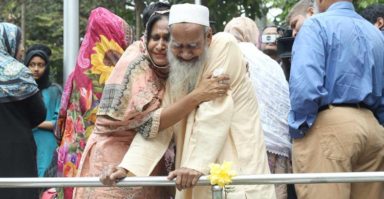 মফিজুলের সঙ্গে সেখানে ছিলেন তার স্ত্রী মমিনুর নেসা সরকারও। তিনিও শোকে পাথর হয়ে দাঁড়িয়ে ছিলেন ছেলের কবরের পাশে। তার চোখ দিয়েও ঝরছিল শোকের অঝোর ধারা। হাউমাউ করে কেঁদেই যাচ্ছিলেন। একটা চাপা কষ্ট, একটা শূন্যতা, সন্তানকে ছুঁয়ে দেখতে না পারার অসহায় আর্তি বৃদ্ধ এ দম্পতি বয়ে বেড়াচ্ছেন গত ১৫ বছর ধরে।