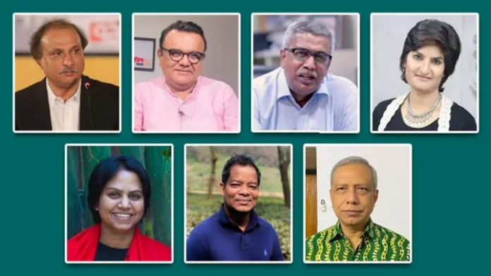 তাঁরা হলেন—একাত্তর টিভির ব্যবস্থাপনা পরিচালক মোজাম্মেল বাবু, একাত্তর টিভির সাবেক বার্তা প্রধান সৈয়দ ইশতিয়াক রেজা, সময় টিভির ব্যবস্থাপনা পরিচালক ও সিইও আহমেদ জোবায়ের, এটিএন নিউজের সাবেক বার্তা প্রধান মুন্নী সাহা, একাত্তর টিভির প্রিন্সিপাল করেসপনডেন্ট ফারজানা রুপা, একাত্তর টিভির চাকরিচ্যুত হেড অব নিউজ শাকিল আহমেদ ও সাবেক প্রধানমন্ত্রীর প্রেস সচিব নাঈমুল ইসলাম খান।