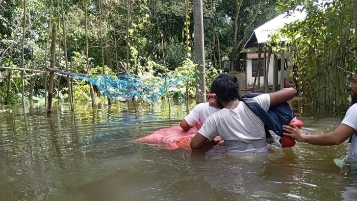 বন্যা উপদ্রুত এলাকায় সরকারি-বেসরকারিসহ সবপর্যায় থেকে ত্রাণ বিতরণ অব্যাহত রয়েছে জানিয়ে তিনি বলেন, বৈষম্যবিরোধী ছাত্র আন্দোলনের সমন্বয়কদের সংগৃহীত মোট এক লাখ ৪ হাজার ১০০ প্যাকেট শুকনা খাবার, কাপড় ও পানি দুর্যোগ ব্যবস্থাপনা অধিদফতরের মাধ্যমে বন্যাকবলিত এলাকায় পাঠানো হয়েছে। দুর্যোগ ব্যবস্থাপনা অধিদপ্তর ও বৈষম্যবিরোধী ছাত্র আন্দোলনের মধ্যে সার্বক্ষণিক যোগাযোগ অব্যাহত রয়েছে।