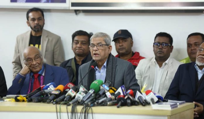 গণতন্ত্র ফেরাতে ‘বিভেদ নয়, ঐক্যের’ আহ্বান জানিয়ে বিএনপি মহাসচিব মির্জা ফখরুল ইসলাম আলমগীর বলেছেন, ‘‘নির্বাচিত সংসদ ও নির্বাচিত সরকার ছাড়া কোনো সংস্কারের বৈধতা আমরা দিতে পারব না।’’