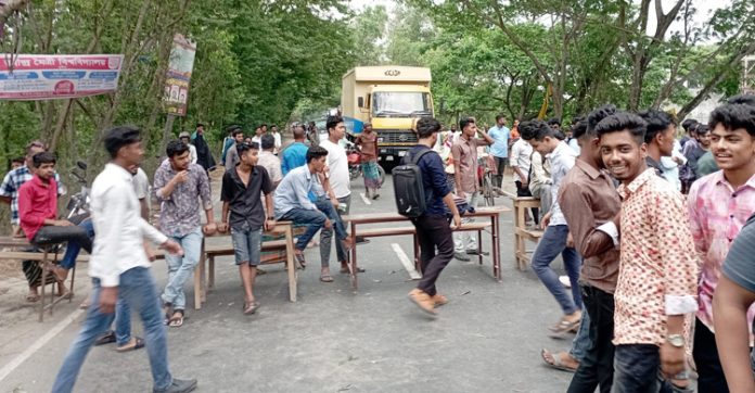 ঝিনাইদহের শৈলকূপায় কলেজ মাঠে স্থাপনা নির্মাণের প্রতিবাদে মহাসড়ক অবরোধ করেছেন শেখপাড়া দুঃখী মাহমুদ (ডিএম) কলেজের শিক্ষার্থীরা। সোমবার (২১ এপ্রিল) বেলা ১১টার দিকে খুলনা-কুষ্টিয়া মহাসড়কের শেখপাড়া বাজার এলাকায় শিক্ষার্থীরা মহাসড়ক অবরোধ করে বিক্ষোভ করেন।
