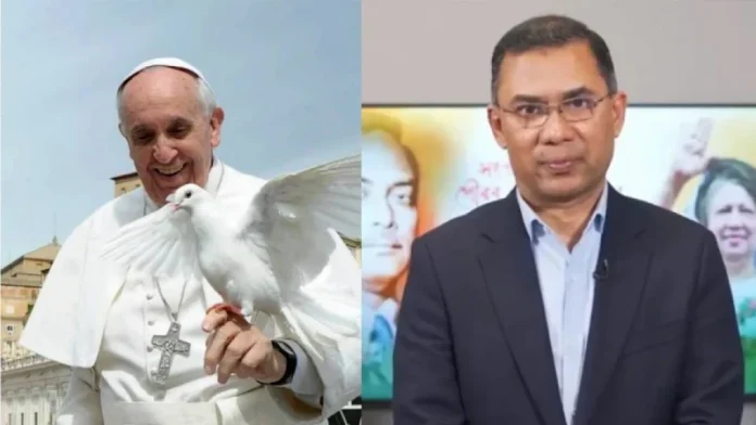 ক্যাথলিক ধর্মগুরু পোপ ফ্রান্সিসের মৃত্যুতে শোক জানিয়েছে বিএনপির ভারপ্রাপ্ত চেয়ারম্যান তারেক রহমান।আজ সামাজিক যোগাযোগ মাধ্যম এক্স এ দেওয়া এক পোস্টে তিনি শোক প্রকাশ করেন। তিনি বলেন, ‘পোপ ফ্রান্সিসের মৃত্যুর খবরে আমি ব্যথিত। তিনি এমন একজন আধ্যাত্মিক নেতা ছিলেন নিয়ে বিভিন্ন বিশ্বাসের মানুষের কাছে শান্তি ও ভালোবাসার বার্তা দেওয়ার জন্য নিরলস কাজ করে গেছেন।’