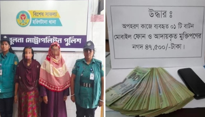 এ ঘটনায় সোমবার (১৮ আগস্ট) এ ঘটনায় হরিণটানা থানায় মামলা দায়ের করা হয়। পরবর্তীতে হরিণটানা থানার একটি চৌকস টিম তথ্যপ্রযুক্তির সহায়তায় অপহরণের সঙ্গে জড়িতদের সনাক্ত করে এবং গোপন সংবাদের ভিত্তিতে সোমবার দিবাগত রাতে শিকদার মার্কেট এলাকায় অভিযান চালায়। এসময় সুফিয়া বেগম ও রুবি বেগম নামের দুই অপহরণকারীকে গ্রেপ্তার করা হয়। তাদের হেফাজত থেকে মুক্তিপণের ৪৭ হাজার ৫০০ টাকা ও একটি মোবাইল ফোন উদ্ধার করা হয়েছে।