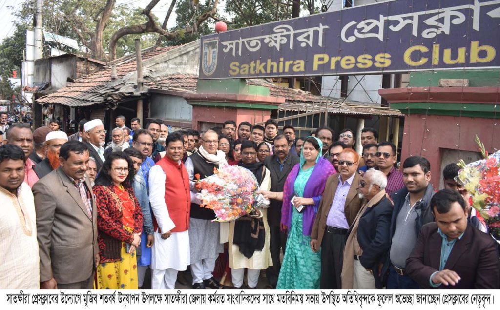সভায় বক্তারা আরও বলেন, ‘সাতক্ষীরা প্রেসকাবে সদস্য পদ বঞ্চিত নির্যাতিত সাংবাদিক সমাজের আন্দোলন সংগ্রামের আজ প্রতিফলন ঘটেছে। সেই প্রতিফলন হচ্ছে সাতক্ষীরা প্রেসকাবের নবনির্বাচিত কমিটি। মহান মুক্তিযুদ্ধের স্বপক্ষের কিছু প্রিন্ট ও ইলেকট্রনিক্স মিডিয়ার প্রতিনিধি হয়ে কাজ করছে কিছু জামাত-বিএনপি ও রাজাকার পরিবারের বংশধররা। অভিযুক্ত এসব ব্যক্তিরা নানাভাবে আজও দেশের বিরুদ্ধে ষড়যন্ত্র চালিয়ে যাচ্ছে। এদেরকে প্রতিহত করতে সকলকে ঐক্যবদ্ধ হতে হবে।’ অনুষ্ঠানের শুরুতে জাতির জনক বঙ্গবন্ধু ও তার পরিবারবর্গ, জাতীয় চারনেতাসহ মহান মুক্তিযদ্ধে সকল শহীদসহ সাতক্ষীরা প্রেসকাবের প্রায়ত সকল সদস্যের আত্মার মাগফিরাত কামনা ও শ্রদ্ধা নিবেদন করে দাড়িয়ে এক মিনিট নিরবতা পালন করা হয়। পরে প্রেসকাবে বঙ্গবন্ধুর জন্মশতবার্ষিকী উপলক্ষে মুজিববর্ষের ক্ষণগনণার ঘড়ির স্লুইচ টিপে উদ্বোধন করেন অতিথিবৃন্দ। মুজিব শতবর্ষ উদ্যাপন উপলক্ষে সাতক্ষীরা প্রেসকাবের সদস্যসহ জেলায় কর্মরত সাংবাদিকদের সাথে জেলার সাতটি উপজেলার সকল প্রিন্ট ও ইলেকট্রনিক্স মিডিয়ার সাংবাদিকদের অংশগ্রহণে সাতক্ষীরা প্রেসকাব সাংবাদিকদের মিলন মেলায় পরিণত হয়। মধ্যহ্নভোজের পরে বিকেলে প্রেসকাবের বঙ্গবন্ধু হল রুমে জেলার সাতটি উপজেলার সাংবাদিকদের নিয়ে এক মতবিনিময় সভা অনুষ্ঠিত হয়।