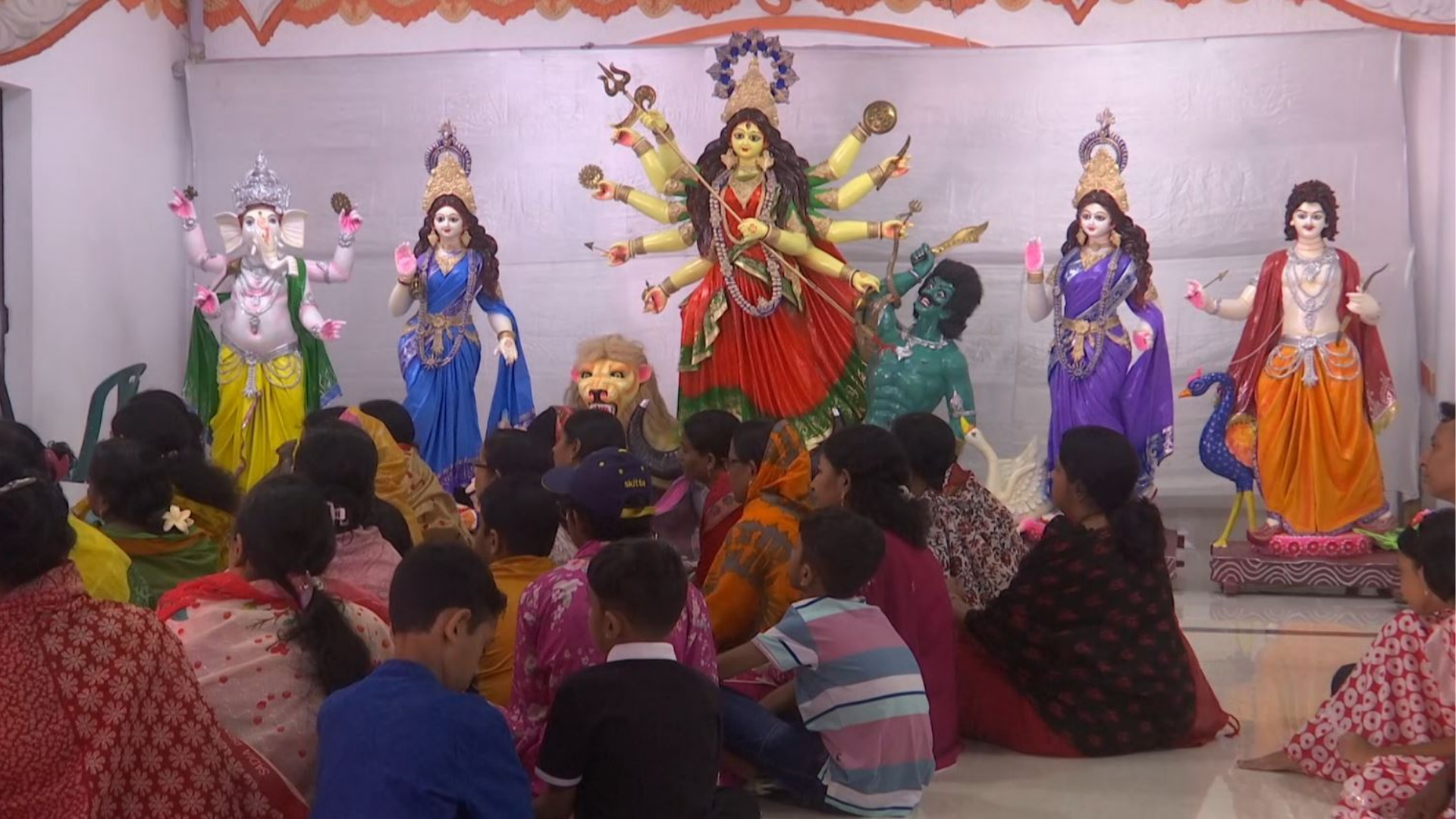 রোববার (২৮ সেপ্টেম্বর) সকালে ঘট স্থাপন ও অধিবাসের মধ্য দিয়ে পূজার সূচনা হয়। এ সময় ভক্তরা উপবাস থেকে দেবী দুর্গার চরণে অঞ্জলি নিবেদন করেন এবং শান্তি, সমৃদ্ধি ও সুস্থতার জন্য প্রার্থনা করেন।