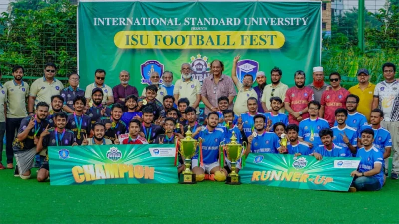ইন্টারন্যাশনাল স্ট্যান্ডার্ড ইউনিভার্সিটি (আইএসইউ) স্পোর্টস ক্লাবের আয়োজনে আইএসইউ ফুটবল ফেস্ট, সিজন–১ এর চ্যাম্পিয়ন হয়েছে বাইনারি ব্লাস্টার্স। গত সোমবার বিকেলে রাজধানীর রয়েল মাল্টিস্পোর্টস এরেনায় চ্যাম্পিয়ন ও রানার্সআপ দলের হাতে ট্রফি তুলে দেন আইএসইউ উপাচার্য প্রফেসর ড. আব্দুল আউয়াল খান এবং জাতীয় ফুটবল দলের কিংবদন্তি ফুটবলার কায়সার হামিদ।