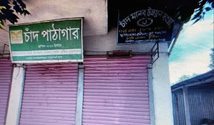 সরেজমিনে দেখা যায়, বাজারের ভেতরে দোকানের সঙ্গে একপাশে চাঁদ মানব উন্নয়ন সংস্থার ৩ ফুট বাই ২ ফুটের একটি সাইনবোর্ড টানানো রয়েছে। আরেক পাশে পাঠাগারের সাইনবোর্ড লাগানো। প্রতিদিন বিকেলে সাটার খুলে সেখানে পাঠাগারের কার্যক্রম চলে। কামরুজ্জামান মাঝে মধ্যে সেখানে যান। বিকেলে পাঠাগার খোলা হয়। গ্রামের ছাত্র-ছাত্রী ও দুই একজন কৃষকও পাঠাগারে আসেন। মূলত সন্ধ্যার পর পর্যন্ত কার্যক্রম পরিচালিত হয়। সংস্থার আর কোনো শাখা অফিস নেই। জেলা শহর থেকে ৩০ কিলোমিটার এবং উপজেলা শহর থেকে প্রায় ৯ কিলোমিটার দূরে গড়াই নদের তীরে চাঁদট বাজারে চাঁদ মানব উন্নয়ন সংস্থার কার্যালয়। বিকেলে গিয়ে দেখা যায়, বাজারের সব দোকানই তখন বন্ধ। সুনসান নীরবতা। সংস্থার কার্যালয়ও তালা লাগানো ছিল।
