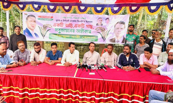 তিনি আরও বলেন, “সুষ্ঠু ও গ্রহণযোগ্য নির্বাচন হলে ইনশাআল্লাহ বিএনপি ক্ষমতায় আসবে। সরকার গঠন করলে নারীদের জন্য দেওয়া হবে পারিবারিক কার্ড এবং ৫০ লাখ কৃষাণীর হাতে তুলে দেওয়া হবে কৃষক কার্ড।” বিকাল ৪টায় আজোগড়া ইউনিয়ন বিএনপি আয়োজিত সভায় “একটি বাড়ি, একটি গাছ—সবুজায়নের অঙ্গীকার” শীর্ষক বৃক্ষরোপণ কর্মসূচির উদ্বোধন করেন তিনি। পরবর্তীতে শেখপুরা বাজারে মিছিল ও লিফলেট বিতরণে অংশ নেন। বিকাল সাড়ে ৫টায় শ্রীফলতলার জেবিএম মাধ্যমিক বিদ্যালয় কেন্দ্রে সভা ও বৃক্ষরোপণ কর্মসূচিতে অংশ নিয়ে তিনি নেতাকর্মীদের ঐক্যবদ্ধভাবে ধানের শীষের বিজয় নিশ্চিত করার আহ্বান জানান। হেলাল বলেন,প্রতিটি ঘরে আমরা একটি করে ফলজ গাছ দিচ্ছি। এগুলোর যত্ন নিন, কারণ সবুজ বাংলাদেশের ভবিষ্যৎ নির্ভর করে আপনাদের হাতে। অনুষ্ঠানে উপস্থিত ছিলেন জেলা স্বেচ্ছাসেবক দলের আহ্বায়ক আতাউর রহমান রনু,শ্রমিক দলের সভাপতি উজ্জ্বল কুমার সাহা, উপজেলা বিএনপির আহ্বায়ক মোল্লা সাইফুর রহমান, সার্চ কমিটির আহ্বায়ক চৌধুরী কাওছার আলী,মোল্লা খায়রুল ইসলাম, এনামুল হক সজল, রিয়াজ মোল্লা, জাবেদ হোসেন মল্লিক,বিকাশ মিত্র, শাহাবুদ্দীন ইজারাদার,মহিলা দলের সভানেত্রী মর্জিনা প্রমুখ। হেলালের এই কর্মসূচি স্থানীয় জনমনে উৎসাহ সৃষ্টি করেছে রাজনীতির সঙ্গে পরিবেশ সচেতনতার এমন সংযোজন খুলনা-৪ এর নির্বাচনী মাঠে নতুন মাত্রা যোগ করেছে।
