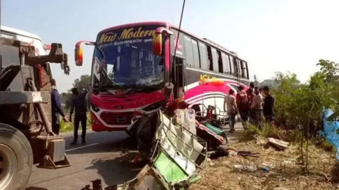 ফরিদপুরের ভাঙ্গায় বাস-অটোরিকশার মুখোমুখি সংঘর্ষে একই পরিবারের তিনজনসহ ব্যাটারিচালিত অটোরিকশার চার যাত্রী নিহত হয়েছেন। এতে আহত হয়েছেন আরও ছয়জন। শুক্রবার দুপুর ১২টার দিকে ঢাকা-বরিশাল মহাসড়কের ভাঙ্গার কৈডুবি সদরদীর রেলক্রসিং এলাকায় এ দুর্ঘটনা ঘটে।