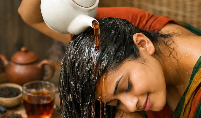 চায়ে থাকা ক্যাফিন স্ক্যাল্পে রক্ত চলাচলে বিশেষভাবে সহায়তা করে। হেয়ার ফলিকলে পুষ্টি জোগায়। অকাল পক্বতা রোধ করতেও ভূমিকা রাখে।