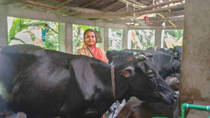 গৃহবধূ অর্চনা ঘোষ জানান, ২০০৮ সালে স্বামীর মৃত্যুর পর সংসারের সব বোঝা পড়ে তাঁর ঘাড়ে। স্বামী হারিয়ে দুই সন্তানকে নিয়ে দিশেহারা প্রায়। বেসরকারি এক সংস্থা থেকে ঋণ নিয়ে একটি গরু কেনেন। এখন তিনি সাতটি গাভির মালিক। আধুনিক যন্ত্রপাতি ব্যবহার করায় গরু পালন এখন তাঁর কাছে আরও সহজ।