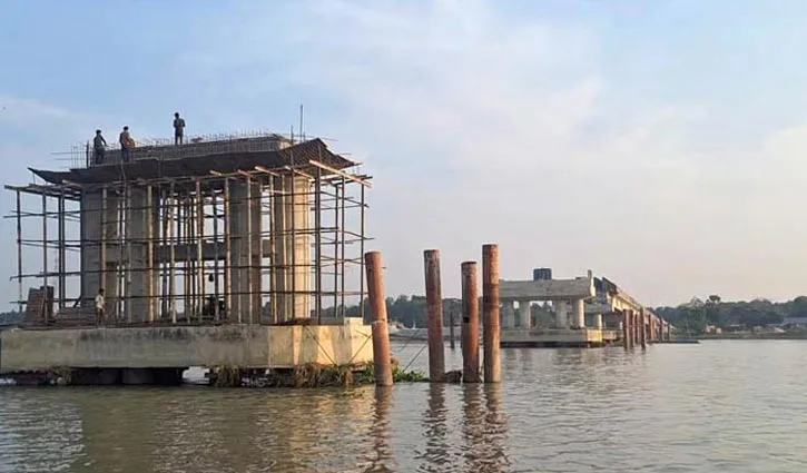 নড়াইলের কালিয়া উপজেলার নবগঙ্গা নদীর ওপর আট বছরেও শেষ হয়নি সেতুর কাজ।
