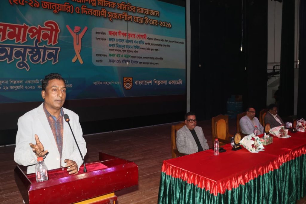 বৃহস্পতিবার (২৯জানুয়ারি) খুলনা শিল্পকলা একাডেমিতে বাংলাদেশ শিল্পকলা একাডেমির সহযোগিতায় বাংলাদেশ যাত্রামালিক সমিতি আয়োজিত ৫দিনব্যাপী অনুষ্ঠিত যাত্রাপালার শেষ দিনে প্রধান অতিথির বক্তব্যে তিনি এসব কতঅ বলেন। তিনি বলেন, যাত্রাশিল্প শুধু বিনোদনের মাধ্যম নয়; এটি আমাদের ইতিহাস, সংস্কৃতি ও গ্রামীণ জীবনের অবিচ্ছেদ্য অংশ। এই শিল্পের সঙ্গে জড়িয়ে আছে বাংলার মানুষের সুখ-দুঃখ, সংগ্রাম ও মূল্যবোধ।