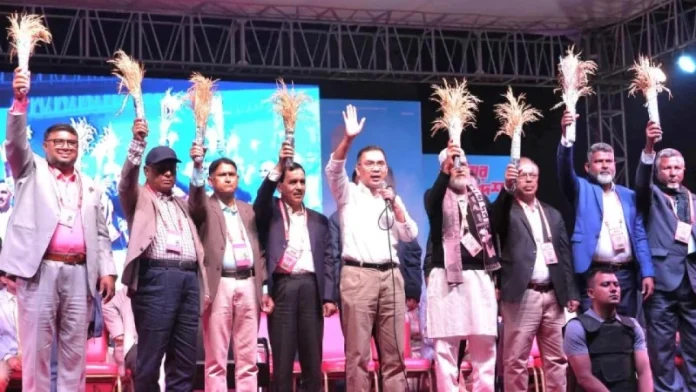 তারেক রহমান বলেন, ‘হুট করে প্লেনে চড়ে পালিয়ে যাওয়ার পরিকল্পনা আমাদের নাই। বিএনপির সাথে জনগণ ছিল বলে গত ১৭ বছর এত অত্যাচার নির্যাতনে বিএনপির আজও টিকে আছে।’ তাই আগামীতে ধানের ভোট দেওয়ার আহ্বান জানান তিনি।