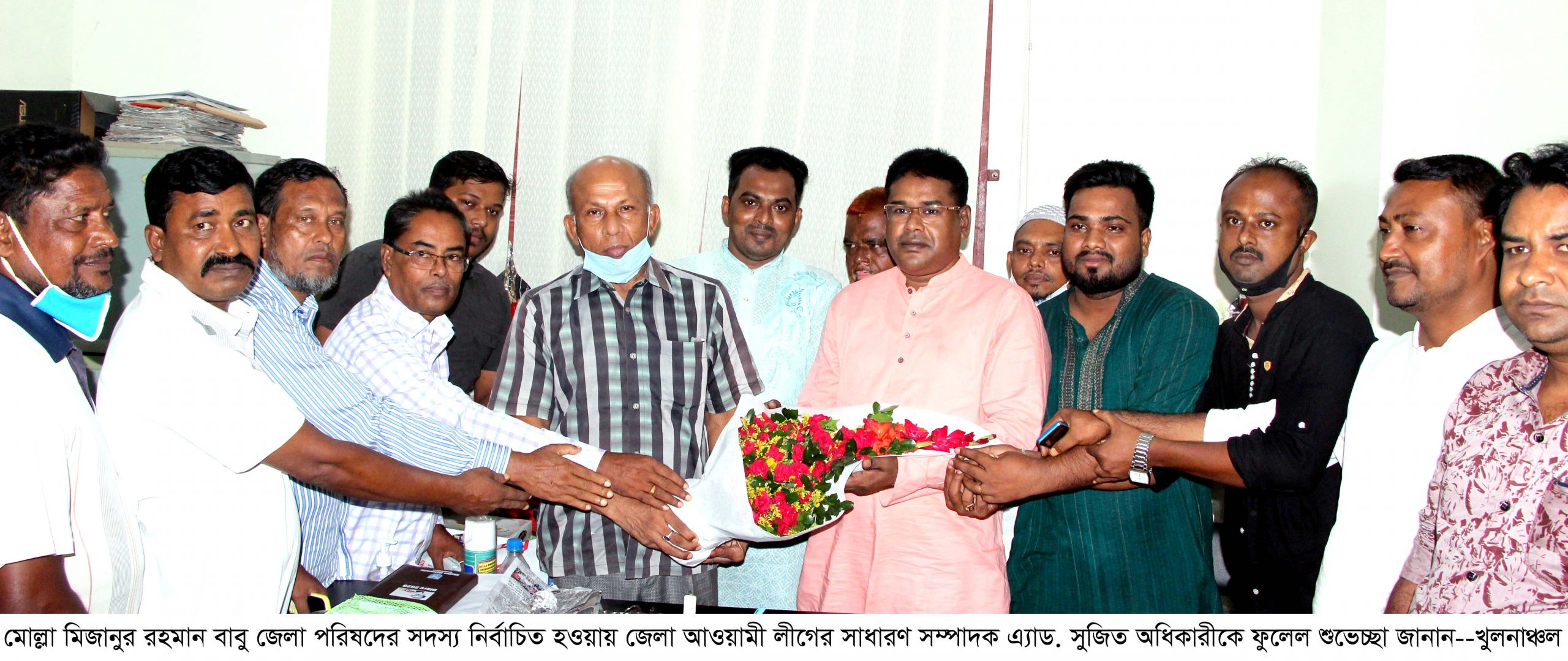 খুলনা জেলা আওয়ামী লীগের সাধারণ সম্পাদক এ্যাড. সুজিত অধিকারীর সাথে শুভেচ্ছা বিনিময় করেছেন জেলা পরিষদের সদস্য নবনির্বাচিত সদস্য মোল্লা মিজানুর রহমান বাবু।