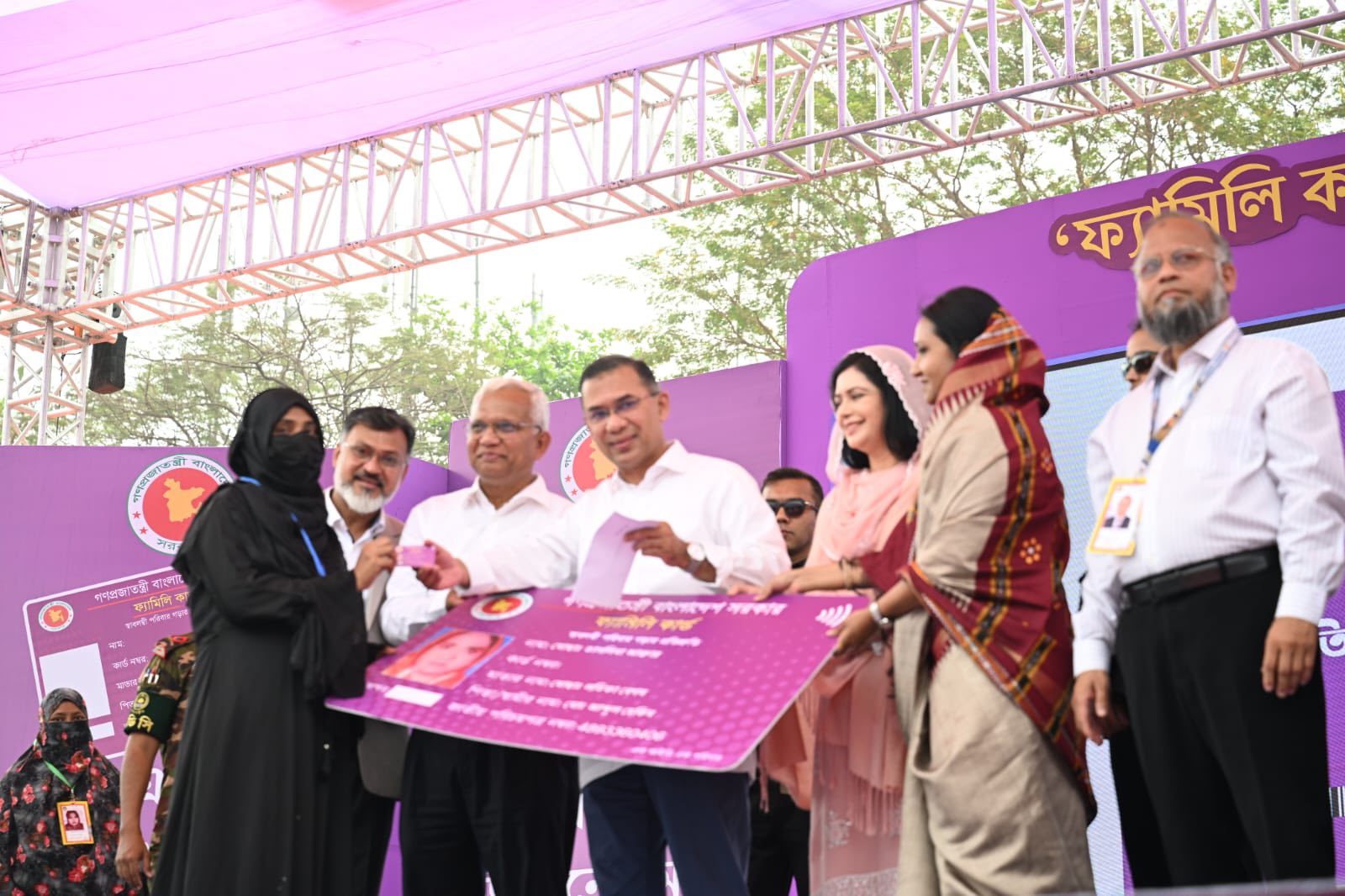 এ অনুষ্ঠানে ১৭ জন নারীর হাতে ‘ফ্যামিলি কার্ড’ তুলে দেন প্রধানমন্ত্রী তারেক রহমান। কার্ড তুলে দেওয়ার পরপরই সরকারপ্রধান ল্যাপটপে একটি বাটন প্রেস করেন, সঙ্গে সঙ্গে উপকারভোগীদের কাছে নগদ অর্থ চলে যায়। এ সময় করতালিতে মুখরিত হয়ে ওঠে অনুষ্ঠানস্থল।