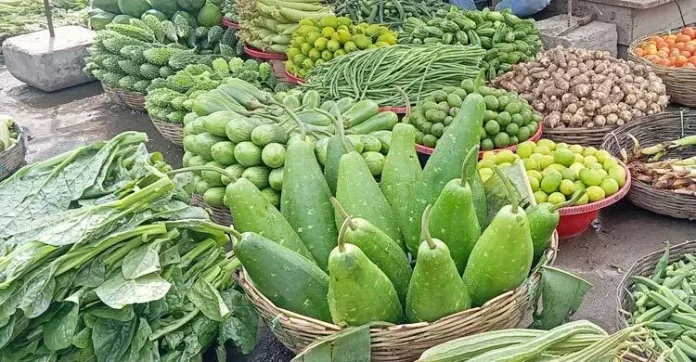 সবজির বাজার ঘুরে দেখা যায়, বেগুন ৫০ টাকা, টমেটো ২০ টাকা কেজি, লাউ ৪০-৫০ টাকা প্রতি পিস, কুমড়া ৪০ টাকা কেজি, ঢ্যাঁড়স ৬০ টাকা, কাঁচামরিচ ৬০ -৭০ টাকা, পেঁপে ৪০ টাকা কেজি, শসা ৬০ টাকা কেজি, পটল ৮০ টাকা কেজি, কুশি ৮০ টাকা কেজিতে বিক্রি হচ্ছে। অন্যদিকে পেঁয়াজ ২৫-৩০ টাকা দরে এবং রসুন ৭০-১০০ টাকা কেজি দরে এবং আলু ২০-২৫ টাকা কেজি দরে বিক্রি হচ্ছে।