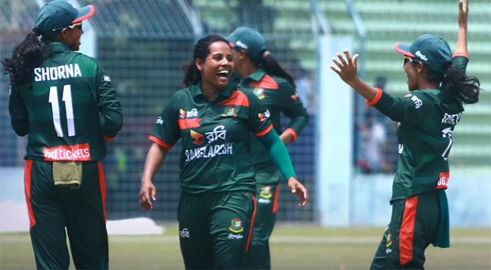 বাংলাদেশের শারমিন আক্তার একাই জয়ের ভীত গড়ে দেন। তার ব্যাট থেকে আসে ঝকঝকে ৮৬ রান। সোবহানা মোস্তারি, স্বর্ণা আক্তারও অবদান রাখেন। সোবহানার ব্যাট থেকে আসে ৪১ রান, স্বর্ণা যোগ করেন ৩৫। এই ত্রয়ীর ব্যাটে ভর করেই আশার আলো দেখে বাংলাদেশ।