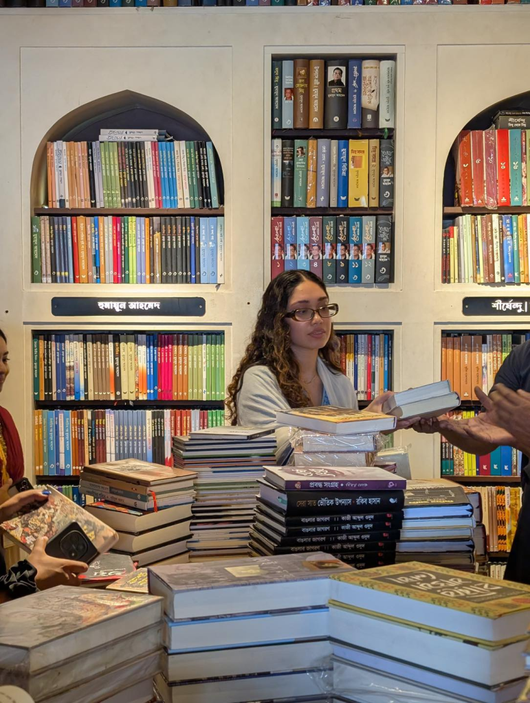 রাজধানীর বাংলামোটরের চেইন বুকশপ বাতিঘরে গিয়ে বই সংগ্রহ করেছেন প্রধানমন্ত্রী তারেক রহমানের মেয়ে জাইমা রহমান।