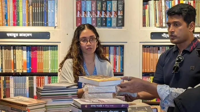 শনিবার (২৫ এপ্রিল) দুপুর ১২টার দিকে সেখানে যান তিনি। প্রায় আধা ঘণ্টা সময় ঘুরে নিজের পছন্দমতো বেশ কিছু বই সংগ্রহ করেছেন তিনি।