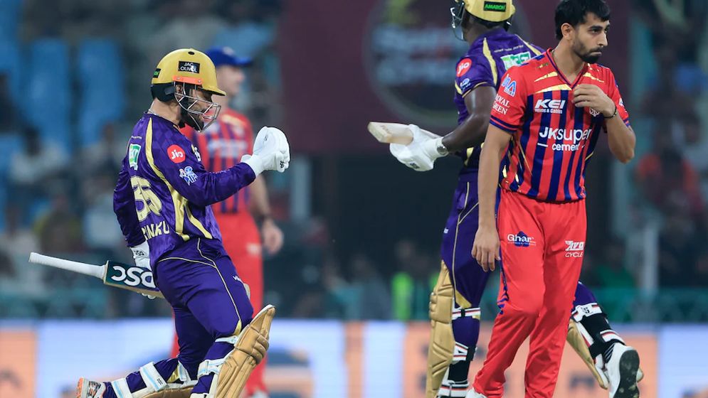 ২ রানের লক্ষ্য নিয়ে নামেন রিংকু সিং ও রোভম্যান পাওয়েল। প্রিন্স যাদবের বল বাউন্ডারিতে পাঠিয়ে সহজেই জয় নিশ্চিত করেন রিংকু।