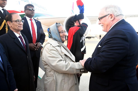 বিমান বাংলাদেশ এয়ারলাইন্সের একটি ভিভিআইপি ফাইট প্রধানমন্ত্রী ও তাঁর সফরসঙ্গীদের নিয়ে স্থানীয় সময় বিকেল ৪টা ৩০ মিনিটে রোমের ফিয়ামিসিনো বিমানবন্দরে অবতরণ করে। মিনিস্টার প্লেনিপোটেনসিয়ারি অব ইটালিয়ান ফরেন মিনিস্ট্রি ক্রিস্টিয়ানো কোস্তাফাবি এবং ইতালিতে বাংলাদেশের রাষ্ট্রদূত আবদুস সোবহান সিকদার প্রধানমন্ত্রীকে বিমানবন্দরে অভ্যর্থনা জানান।