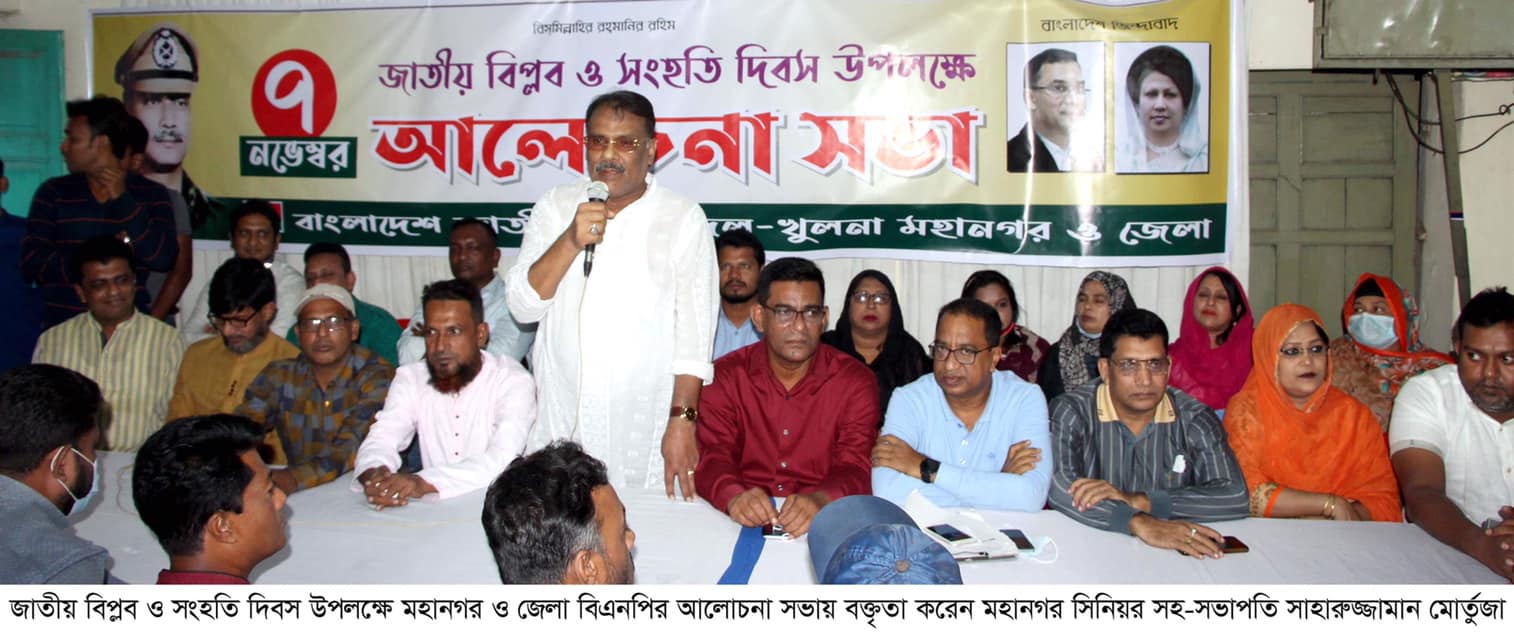 খুলনা মহানগর বিএনপি’র সিনিয়র সহ-সভাপতি কেন্দ্রীয় বিএনপি নেতা শাহারুজ্জামান মোর্তজার সভাপতিত্বে আলোচনা সভায় গুরুত্বপূর্ণ আলোচনা করেন মহানগর বিএনপি নেতা সাবেক ছাত্রনেতা শফিকুল আলম তুহিন, স্বেচ্ছাসেবক বিষয়ক সম্পাদক, স্বেচ্ছাসেবক দলের কেন্দ্রীয় কমিটির সাবেক সহ-সভাপতি আজিজুল হাসান দুলু।