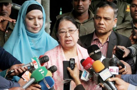উন্নত চিকিৎসার প্রয়োজনে খালেদা জিয়ার মুক্তির দাবি জানিয়ে তার বোন সেলিমা ইসলাম বলেন, তার বয়স, অসুস্থতা এসব মানবিক দিক বিবেচনায় নিয়ে আমরা তার মুক্তির জন্য সরকারের প্রতি দাবি করছি। তার উন্নত চিকিৎসা খুবই প্রয়োজন। তার শরীর এত খারাপ যে এই মুহূর্তে যদি চিকিৎসা না দেওয়া যায়, তাহলে তার কী হবে সেটা আমরা বলতে পারছি না। আমাদের আবেদন তাকে মুক্তি দেওয়া হোক যেন চিকিৎসাটুকু করতে পারি। পরিবারের পক্ষ থেকে খালেদা জিয়ার মুক্তির জন্য বিশেষ আবেদন করবেন বলেছিলেন, তা করেছেন কিনা জানতে চাইলে সেলিমা ইসলাম বলেন, ‘না, এখনও কারও কাছে আবেদন করিনি। জাতির কাছে আবেদন করছি। তার জন্য দোয়া করবেন। তার মুক্তির জন্য আপনারাও চেষ্টা করবেন।’ পরিবারের পক্ষ থেকে আজ বিএসএমএমইউ কর্তৃপক্ষের কাছে একটা আবেদন করেছেন, সেটা কী বিষয়ে জানতে চাইলে সেলিমা ইসলাম বলেন, ‘তার মুক্তির জন্য। তাকে তো মিথ্যা একটা মামলায় সাজা দেওয়া হয়েছে। আজকে দুই বছর কারাগারে আছেন। তিনি যে অবস্থায় কারাগারে এসেছেন, হেঁটে-চলে বেড়াতেন। এখন তো সেই অবস্থায় নেই। ৫ মিনিটও দাঁড়াতে পারেন না। বিছানা থেকে বাথরুমের দূরত্ব ২-৩ হাত হবে। এইটুকু যেতে তার ২০ মিনিটের মতো সময় লাগে। তার আসলেই উন্নত চিকিৎসা প্রয়োজন।’ বোন সেলিমা ইসলাম বলেন, ‘আজকেও তার সুগার ১৬-১৭ ছিল। খালেদা জিয়ার বাম হাত সম্পূর্ণ বেঁকে গেছে। এখন ডান হাতটাও বেঁকে যাচ্ছে। খেতে পারছে না। খেলেই বমি হয়ে যাচ্ছে। গায়ে জ্বর ও প্রচ- ব্যথা, কেউ গায়ে হাত দিলেই ব্যথায় চিৎকার করছে।’ এর আগে বেলা সাড়ে ৩ টায় বিএসএমএমইউতে খালেদা জিয়ার সঙ্গে সাক্ষাৎ করতে যান তার মেঝ বোন সেলিমা ইসলাম, বেয়াইন ফাতেমা রেজা, ছোট ভাইয়ের স্ত্রী কানিজ ফাতেমা, ভাগ্নি শাহিনা জামান খান ও ছোট ভাইয়ের ছেলে অভিক ইস্কান্দার। তারা বিকাল ৪ টা ৪৫ মিনিটে হাসপাতাল থেকে বেরিয়ে আসেন।