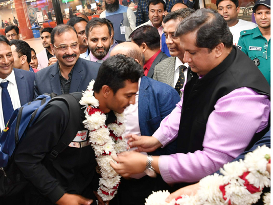 জাতীয় বীরদের বরণ করে নেয়ার সময় ক্রীড়া প্রতিমন্ত্রী বলেন,‘ আমাদের দেশের খেলাধুলার ইতিহাসে এটি সেরা অর্জন। ছেলেরা যে অর্জন বয়ে নিয়ে এনেছে তা নিয়ে আমরা গর্বিত। তারা গোটা জাতিকে গৌরবান্বিত করেছে। আশা করি দলটি দেশের জন্য আরো সফলতা বইয়ে আনবে।’
