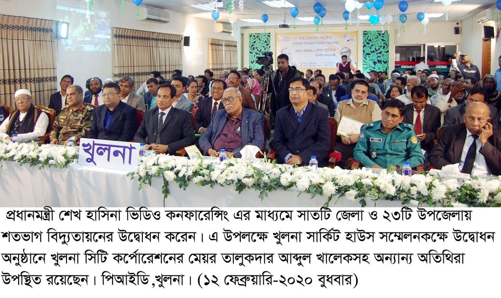 প্রধানমন্ত্রী শেখ হাসিনা বুধবার সকালে গণভবন থেকে ভিডিও কনফারেন্সিং এর মাধ্যমে খুলনার তেরখাদা উপজেলাসহ দেশের সাত জেলা ও ২৩টি উপজেলায় শতভাগ বিদ্যুতায়নের উদ্বোধন করেন। এসময় খুলনা সার্কিট হাউস প্রান্তে উপস্থিত ছিলেন খুলনা সিটি কর্পোরেশনের মেয়র তালুকদার আব্দুল খালেক, খুলনা উন্নয়ন কর্তৃপক্ষের চেয়ারম্যান ব্রিগেডিয়ার জেনারেল মোঃ আব্দুল মুকিম সরকার, জেলা পরিষদের চেয়ারম্যান শেখ হারুনুর রশীদ, খুলনার অতিরিক্ত বিভাগীয় কমিশনার (উন্নয়ন) সৈয়দ রবিউল আলম, অতিরিক্ত বিভাগীয় কমিশনার (সার্বিক) মোঃ হাবিবুল হক খান, অতিরিক্ত জেলা প্রশাসক (এলএ) মোঃ ইকবাল হোসেন, উপপুলিশ কমিশনার মোঃ এহসান শাহ, অতিরিক্ত পুলিশ সুপার (ডিএসবি) মোঃ আনিচুর রহমানসহ বিভিন্ন সরকারি দপ্তরের কর্মকর্তা ও রাজনৈতিক নেতৃবৃন্দ।