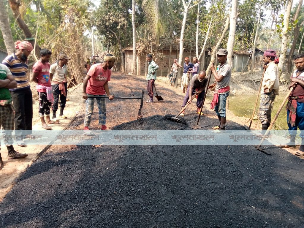 আধারে রাস্তায় প্রাইমকোর্ট (কালো তেল) দেন শ্রমিকরা। সেই অবস্থায় শনিবার (১৩ ফেব্রুয়ারি) সকালে আবার কাজ শুরু হয়। রাস্তার অবস্থা দেখে আবারো কাজ বন্ধ করে দেওয়া হয়। পরে ১১টার দিকে পুনরায় কাজ শুরু হলে চেয়ারম্যান মনিরুজ্জামান মনি এসে কাজ বন্ধ করে দেন।