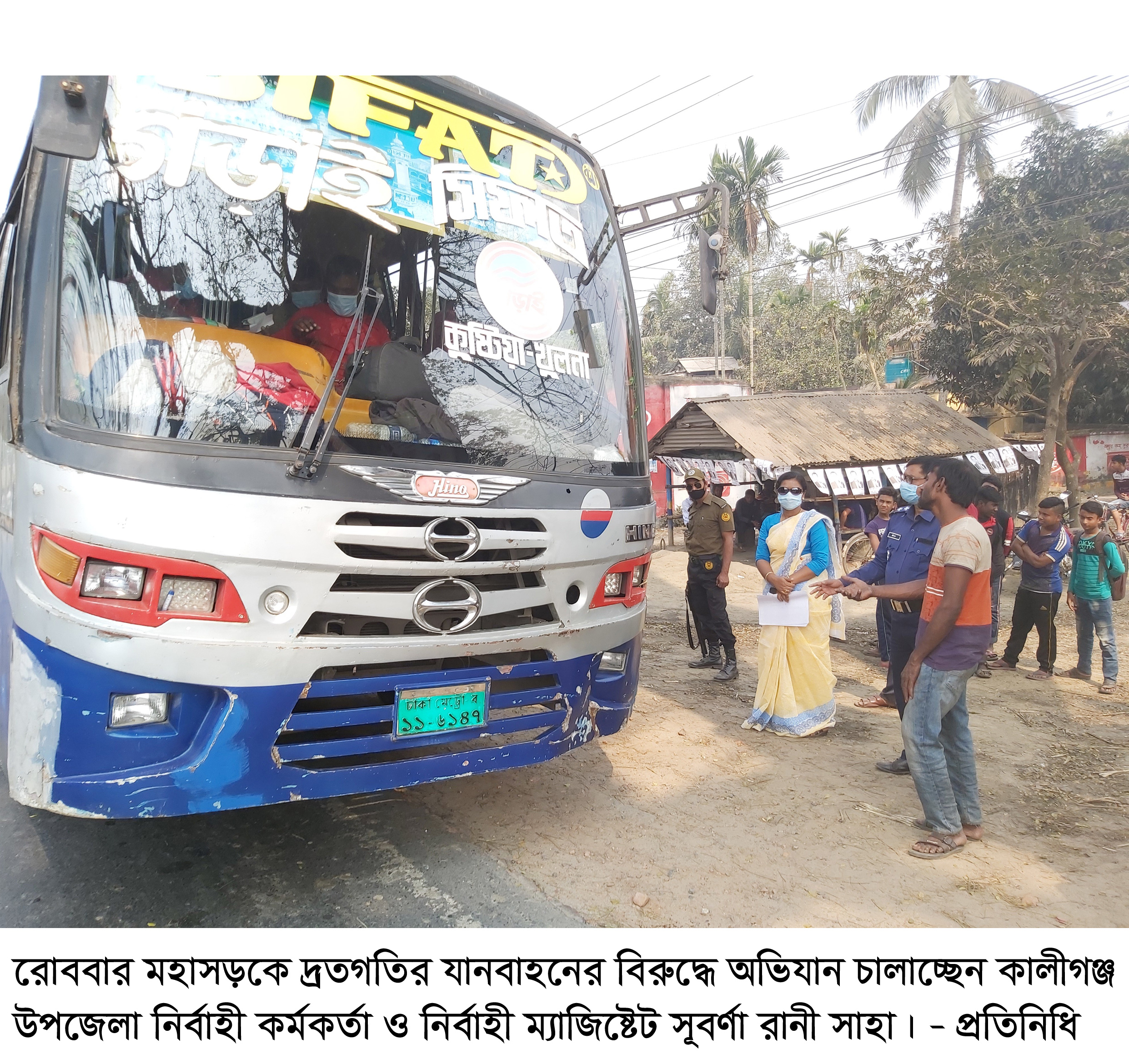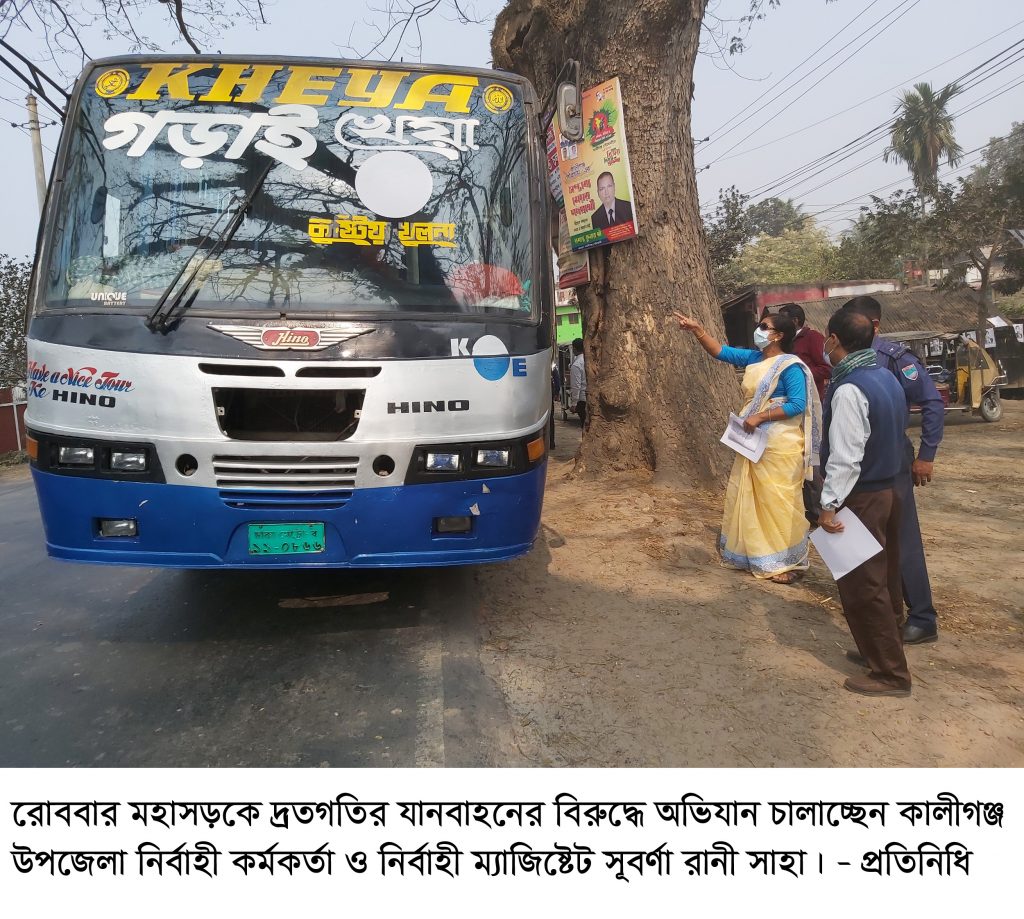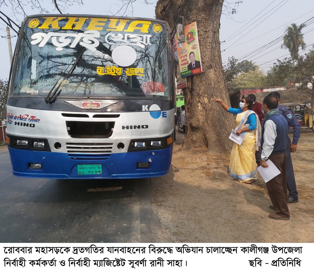 নির্বাহী ম্যাজিষ্ট্রেট সূবর্না রানী সাহা জানান, সম্প্রতি এ মহাসড়কে দূর্ঘটনা বেড়েই চলেছে। পরিবহন চালকদের প্রতিযোগীতামুলক বেপরোয়া গতিতে যানবাহন চালানোর কারনে মহাসড়কে বেড়েছে দূর্ঘটনা। শিকার হয়ে অনেকের জীবনহানী ঘটছে। আবার সারাজীবনের জন্য অনেককে পঙ্গুত্ববরন করতে হচ্ছে। এরই প্রেক্ষিতে উপজেলা প্রশাসন যানবাহনের গতিরোধ ও চালকদের কাগজপত্র দেখতে অভিযানে নেমেছেন। এ সময়ে তিনি ওই সড়কের আলোচিত দ্রুতগতির যাত্রীবাহি গড়াই ও রুপসা পরিবহন সহ ৯ টি যানবাহনের নামে মামলা ও সাড়ে ১২ হাজার টাকা জরিমানা আদায় করেছেন। তিনি আরো জানান, যানবাহন চলাচলে সড়কে শৃংখলা ফিরিয়ে আনতে প্রশাসনের এ অভিযান অব্যাহত থাকবে।