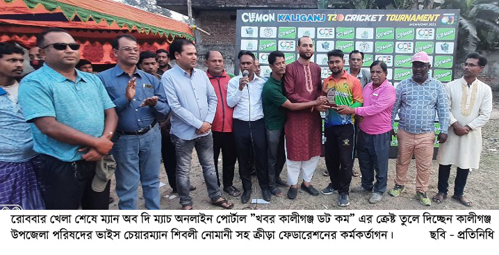 এ টুর্নামেন্টের ম্যান অব দি ম্যাচ পুরস্কারের স্পন্সর হয়েছেন অনলাইন পোর্টাল ”খবর কালীগঞ্জ ডট কম” এবং মিডিয়া পাটর্নার হয়েছেন কালীগঞ্জ প্রেসক্লাব।
