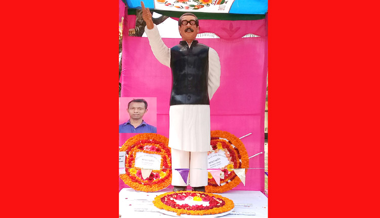 বঙ্গবন্ধু শেখ মুজিবুর রহমান এর ঐতিহাসিক ৭ মার্চের ভাষন স্মৃতিময় করে রাখার জন্য ভাস্কর্য নির্মান করেছেন কাঠমিস্ত্রি আব্দুস সোবাহান শেখ (৩৫)। তিনি প্রধানমন্ত্রী শেখ হাসিনাকে এ ভাস্কর্যটি উপহার দিতে চান। দিন রাত কঠোর শ্রম দিয়ে তৈরী করেছেন এ প্রতিকৃতি। বঙ্গবন্ধুর ঐতিহাসিক ৭ মার্চ জাতীয় দিবসে রোববার উপজেলা চত্বরে ভাস্কর্যটি দর্শকদের জন্য উম্মুক্ত করা হয় ।