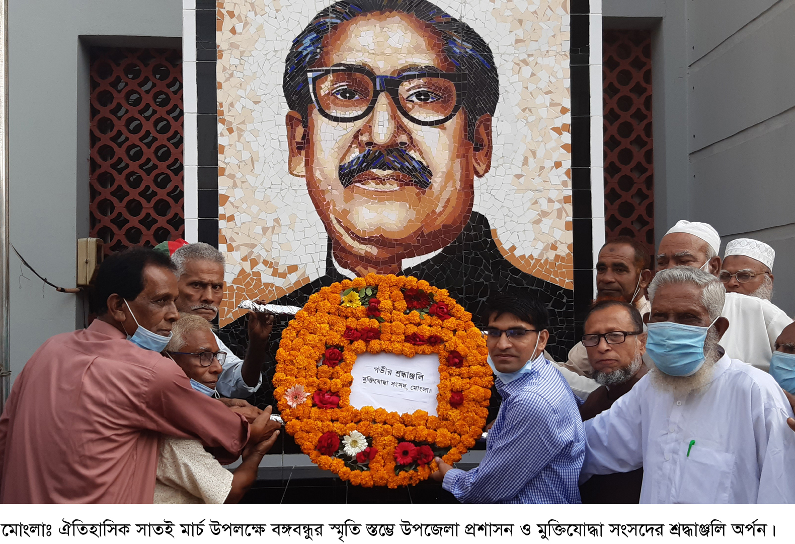 মোংলায় সরকারী-বেসরকারী বিভিন্ন সংস্থার আয়োজনে ৭ মার্চ রবিবার দিনব্যাপী নানা কর্মসূচি পালিত হয়েছে। কর্মসূচির মধ্যে ছিলো বঙ্গবন্ধু স্মৃতি স্তম্ভ ও ভাস্কর্যে শ্রদ্ধাঞ্জলি অর্পন, আলোচনা সভা, শিশু চিত্রাংকন, আবৃত্তি প্রতিযোগিতা ও সাংস্কৃতিক অনুষ্ঠান।