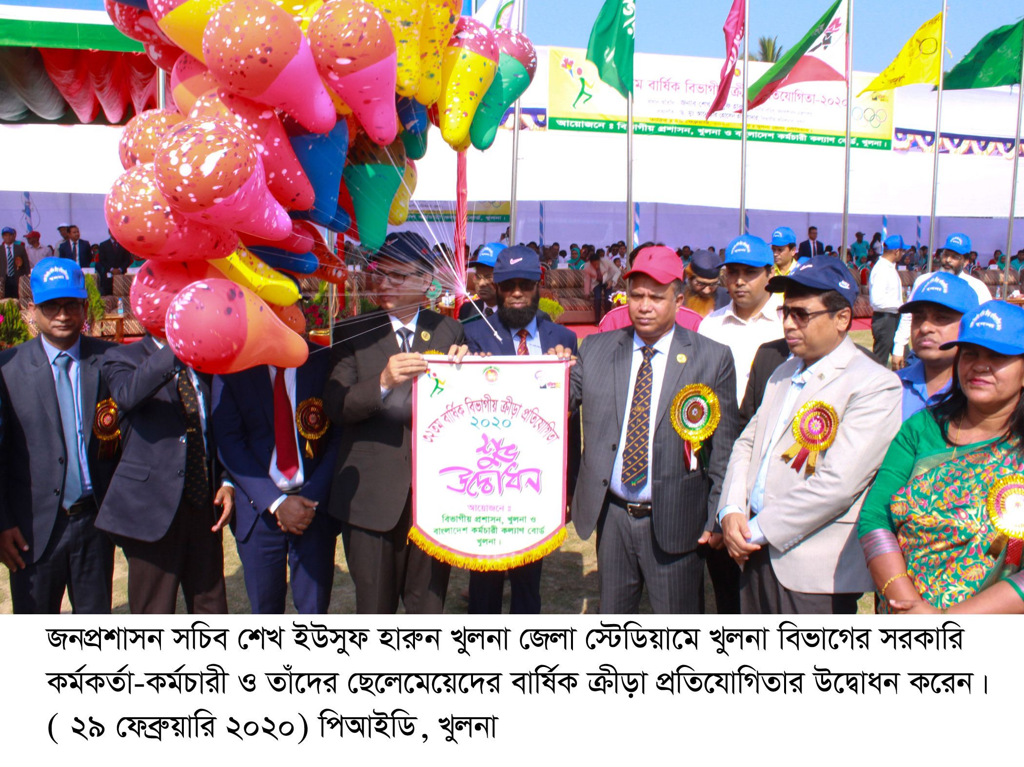 খুলনা বিভাগের সরকারি কর্মকর্তা-কর্মচারী ও তাঁদের ছেলেমেয়েদের ৩২তম বার্ষিক ক্রীড়া প্রতিযোগিতা-২০২০ আজ (শনিবার) সকালে খুলনা জেলা স্টেডিয়ামে অনুষ্ঠিত হয়। ক্রীড়া প্রতিযোগিতার উদ্বোধন করেন জনপ্রশাসন সচিব শেখ ইউসুফ হারুন।