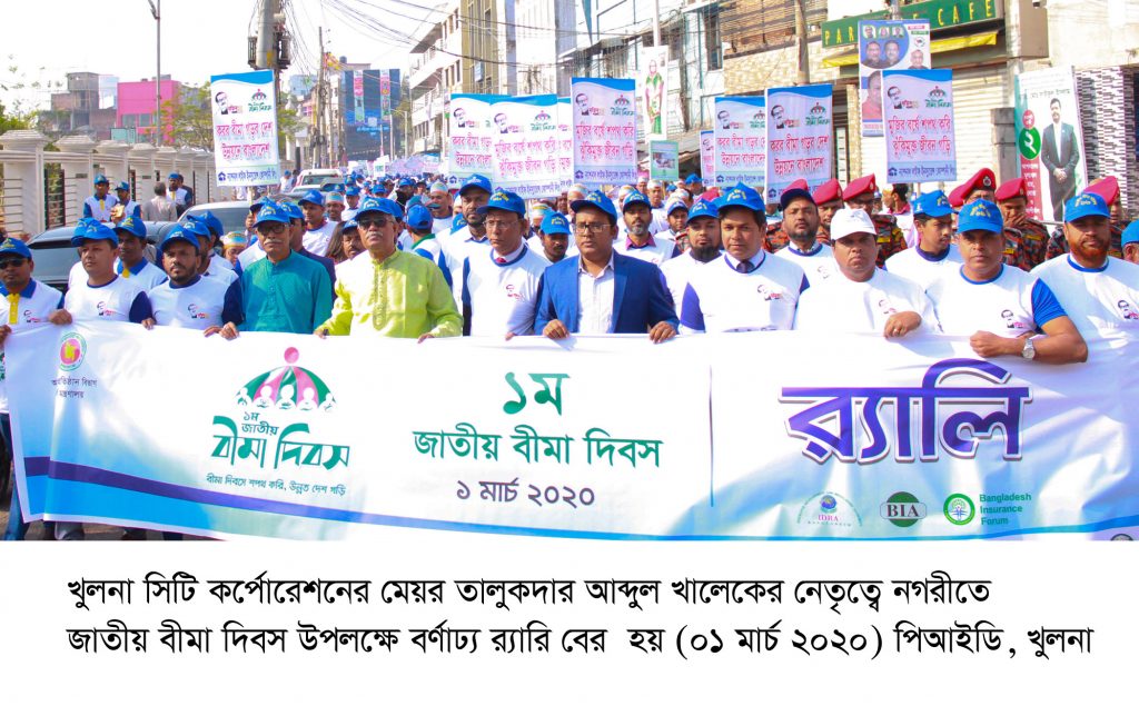 সারা দেশের সাথে খুলনায়ও প্রথমবারের মতো জাতীয় বীমা দিবস-২০২০ আজ (রবিবার) পালিত হয়। দিবসটির এবারের প্রতিপাদ্য ‘বীমা দিবসে শপথ করি, নিরাপদ জীবন গড়ি’। দিবসটি উপলক্ষে নগরীর শহিদ হাদিস পার্কে আলোচনা সভা অনুষ্ঠিত হয়। এতে প্রধান অতিথি ছিলেন খুলনা সিটি কর্পোরেশনের মেয়র তালুকদার আব্দুল খালেক।
