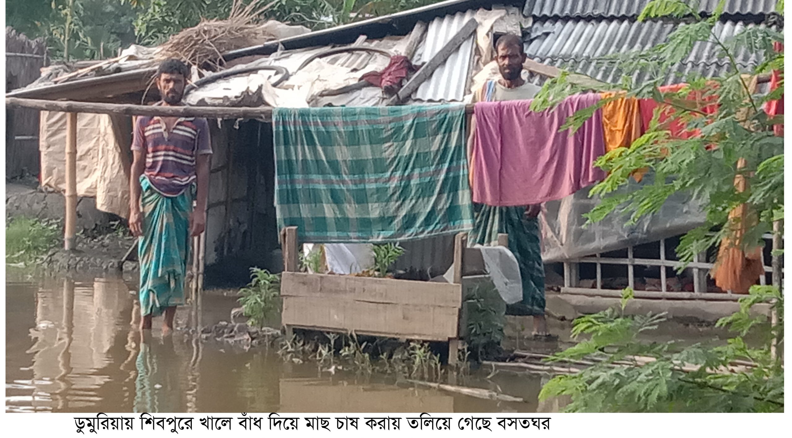 সম্প্রতি স্থানীয় হযরত গাইনের ছেলে হাফিজুর গাইন প্রবাহমান ওই খালে ক্রসবাঁধ দিয়ে মাছ চাষ করায় পানি নিস্কাশনে প্রতিবন্ধকতা সৃষ্টি হয়ে কৃত্রিম জলাবদ্ধতায় তলিয়ে গেছে ওই এলাকা।স্থানীয় আব্দুল গাজী,মোজাফ্ফার শেখ,আজিজুর হালদার সহ ক্ষতিগ্রস্থ অনেকেই জানান,আমাদের ভেড়িবাঁধে রোপিত শশা,করলা,ঝিঙ্গা,তরমুজসহ বিভিন্ন প্রজাতির সবজি, পানিতে তলিয়ে ফলন্ত গাছগলি মরতে বসেছে,মৎস্যঘের তলিয়ে মাছও ভেসে যাচ্ছে এবং বসতঘর তলিয়ে বসবাসের অযোগ্য হয়ে পড়েছে।স্থানীয় ভাবে কয়েক দফায় সমস্যা সমাধানে ব্যর্থ হয়ে অবশেষে চেয়ারম্যান’র সরনাপন্ন হয়েছি।