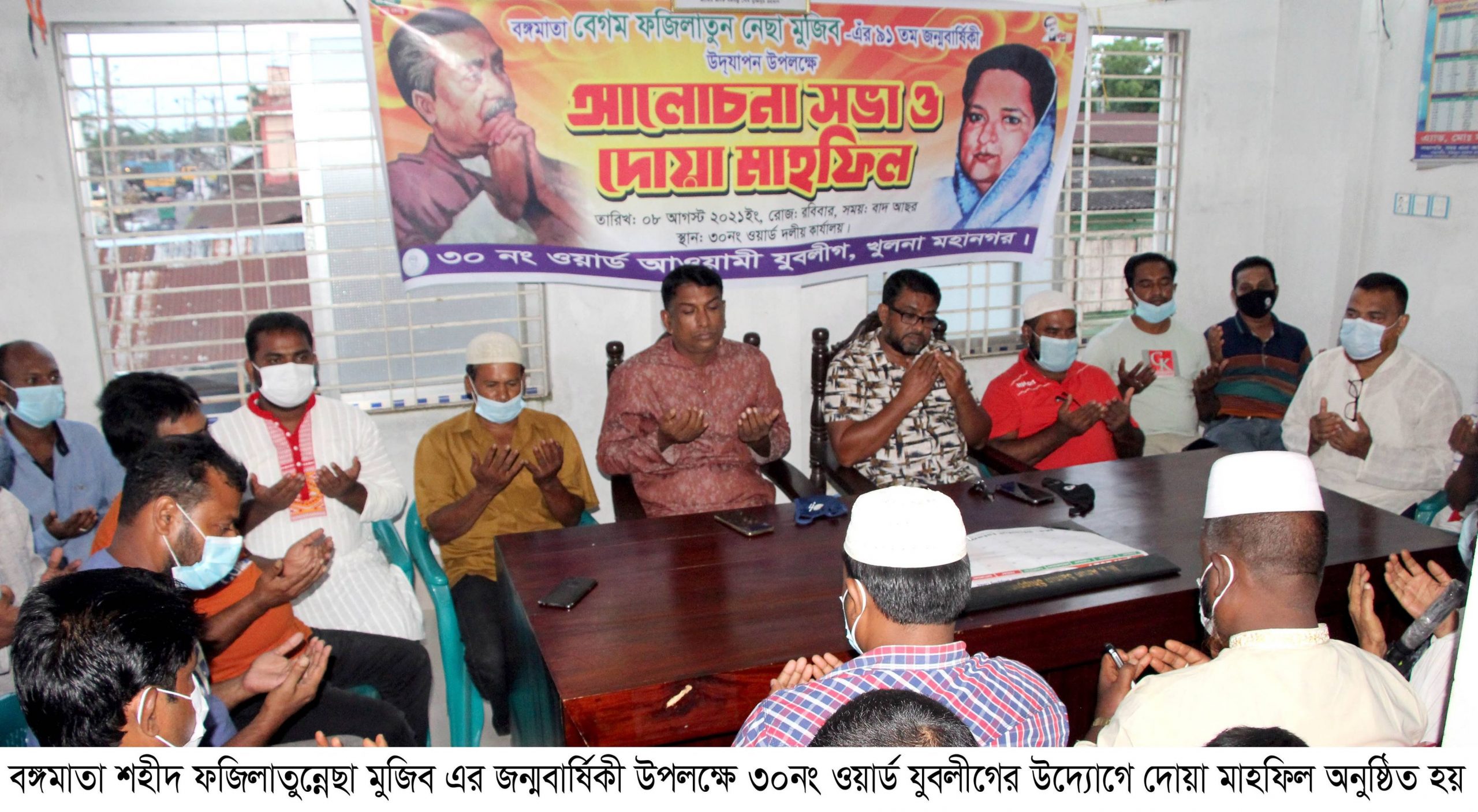 বঙ্গমাতা শহীদ ফজিলাতুন্নেছা মুজিব এর ৯১তম জন্মবার্ষিকী উপলক্ষে আজ রবিবার আসর বাদ ৩০নং ওয়ার্ড যুবলীগের উদ্যোগে আলোচনা সভা ও দোয়া মাহফিল অনুষ্ঠিত হয়।
