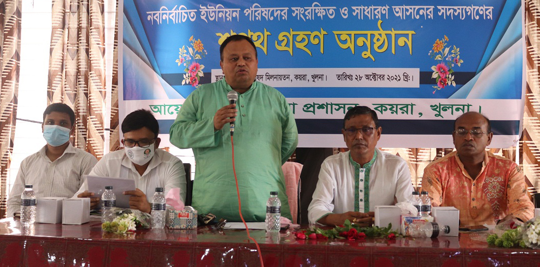 জনগণের কল্যাণে নির্বাচিত জনপ্রতিনিধিদের কাজ করে যাওয়ার আহ্বান জানিয়ে খুলনা-৬ (কয়রা-পাইকগাছা) আসনের সংসদ সদস্য আলহাজ্ব মোঃ আক্তারুজ্জামান বাবু বলেছেন, শুধু ভোটে জয়লাভ করলেই চলবে না, জনগণের হৃদয়ও জয় করতে হবে। তিনি বলেন, ‘জনস্বার্থে যদি আপনি কাজ করেন, মানুষের হৃদয় যদি আপনি জয় করতে পারেন, তাহলে দেখবেন জনগণই আপনার ওপর আস্থা ও বিশ্বাস রেখেছে এবং আপনাকে তাঁদের সেবা করার সুযোগটা বারবার দেবে। সাথে সাথে বঙ্গবন্ধুর স্বপ্ন সোনার বাংলা বাস্তবায়ন হবে। বৃহস্পতিবার (২৮ অক্টোবর) দুপুরে কয়রা উপজেলা পরিষদের মিলনায়তনে উপজেলার নবনির্বাচিত ইউনিয়ন পরিষদের সংরক্ষিত ও সাধারণ আসনের সদস্যগণের শপথ গ্রহণ অনুষ্ঠানে প্রধান অতিথির বক্তৃতায় এসব কথা বলেন। সাংসদ মোঃ আক্তারুজ্জামান বাবু নবনির্বাচিত জনপ্রতিনিধিদের উদ্দেশ্যে বলেন, ‘আপনাদের ওপর বিরাট দায়িত্ব। তাই মনে রাখতে হবে, জনপ্রতিনিধি হওয়া মানেই জনগণের জন্য, শুধু যারা আপনাকে ভোট দিয়েছেন তারা নয়, আপনি এলাকার সব মানুষেরই প্রতিনিধি। এ সময় শপথ বাক্য পাঠ করান উপজেলা নির্বাহী অফিসার অনিমেষ বিশ্বাস। অনুষ্ঠানে বিশেষ অতিথি ছিলেন উপজেলা চেয়ারম্যান এস এম শফিকুল ইসলাম,ভাইস চেয়ারম্যান এ্যাড. কমলেশ কুমার সানা, উপজেলা সহকারী কমিশনার(ভূমি) এম এম সাইফুল ইসলাম, মহিলা ভাইস চেয়ারম্যান নাছিমা আলম, আরও উপস্থিত ছিলেন, উপজেলা প্রাণী সম্পদ কর্মকর্তা মোস্তাইন বিল্লাহ, প্রকল্প বাস্তবায়ন কর্মকর্তা সাগর হোসেন সৈকত, নবনির্বাচিত ইউপি চেয়ারম্যান আব্দুস সামাদ গাজী, সরদার নূরুল ইসলাম কোম্পানী, আব্দুল্লাহ আল মাহমুদ,জিয়াউর রহমান জুয়েল, শাহ নেওয়াজ শিকারী, আছের আলী মোড়ল, জেলা যুবলীগ নেতা শামীম সরকার, আওয়ামী লীগ নেতা মাস্টার খগেন্দ্রনাথ মন্ডল, কফিল উদ্দিন, হারুন অর রশিদ, খায়রুল আলম, উপজেলা ছাত্রলীগের সাধারণ সম্পাদক আমিনুল হক বাদল, সহ-সভাপতি তরিকুল ইসলামসহ নবনির্বাচিত সংরক্ষতি ইউপি সদস্য, সাধারণ সদস্য, রাজনৈতিক ও সুশীল সমাজের ব্যক্তিবর্গ উপস্থিত ছিলেন। এর আগে এমপি আক্তারুজ্জামান বাবু, গত ২৬ অক্টোবর কয়রার বাগালী ইউনিয়নে বামিয়া গ্রামে দুর্বৃত্তরা নির্মম ভাবে মা বাবা ও সন্তানকে হত্যা করে সেই নিহতদের কবর জিয়ারত ও পরিবারের সদস্যদের স্বান্ত¦না দেন।