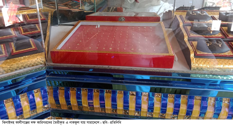 সারাদেশের স্বর্ণালংকারের বাজারে ঝিনাইদহ কালীগঞ্জের কারিগরদের তৈরী করা নাকফুলের ঐতিহ্য দীর্ঘদিনের। এখানকার দক্ষ কারিগরদের তৈরী করা সেই নাকফুলে পড়েছিল মহামারি করোনার ছাপ। করোনা বিস্তারকালে নাকফুল কিনতে অন্য জেলা থেকে আসতো না কোন পাইকার। ফলে বন্ধ হয়ে যায় নাকফুল তৈরীর কারখানা। কাজ হারিয়ে বেকার হয়েছিল এখানকার কমপক্ষে সাড়ে ৩ হাজারের অধিক কারিগর। কারখানার মালিকেরা হারিয়েছে পূঁজি। যা এখনও ঠিকমত কাটিয়ে উঠতে না পারলেও ঘুরে দাঁড়ানোর চেষ্টায় মালিক শ্রমিক উভয়ই ব্যস্ত।